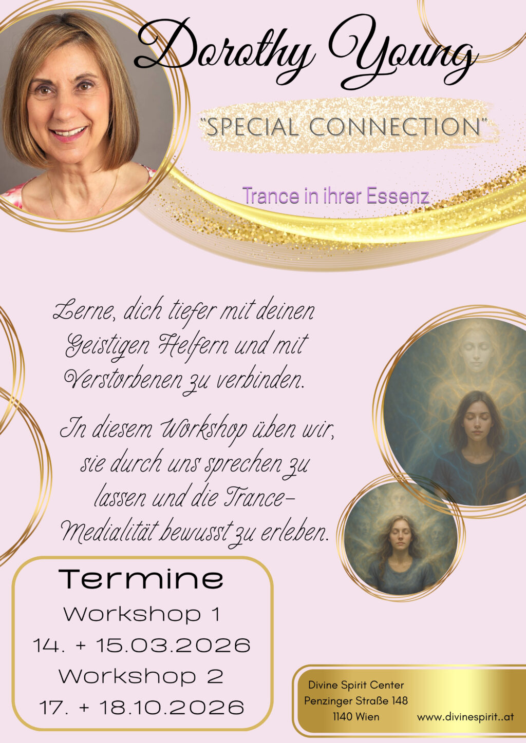 * Einzelsitzungen – Dorothy Young, Bill Hughes (bei Bedarf inkl. deutscher Übersetzung) und Medien von Divine Spirit